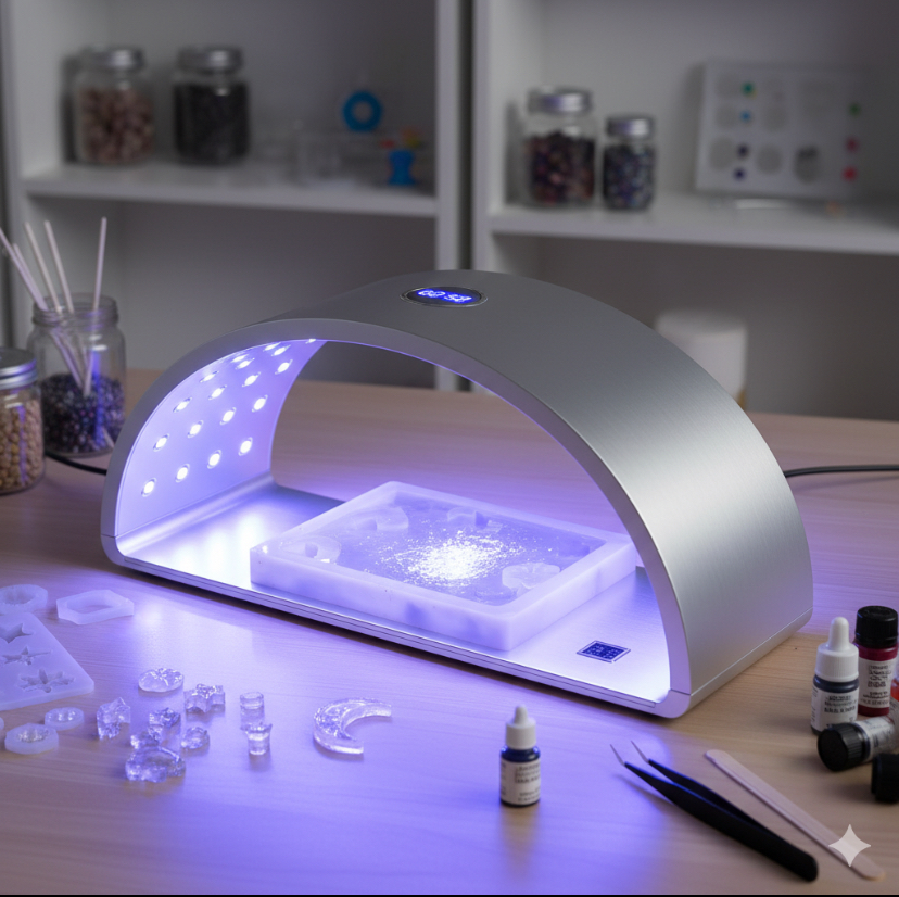 - 24W~36W:趣味でレジンクラフトを続けるなら、このクラスが最も標準的で人気のあるパワーです。30秒~1分程度でストレスなく硬化でき、硬化不良のリスクも大幅に減ります。初心者から中級者まで、快適な作品作りを目指すなら、このクラスがひとつの基準になります。