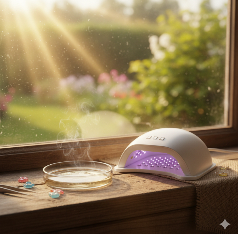「専用のライトを買う前に、まず家にあるもので試してみたい」と考えたとき、多くの方が思いつくのが太陽光の利用です。結論から言うと、太陽光に含まれる紫外線でレジン液を硬化させることは理論上、可能です。