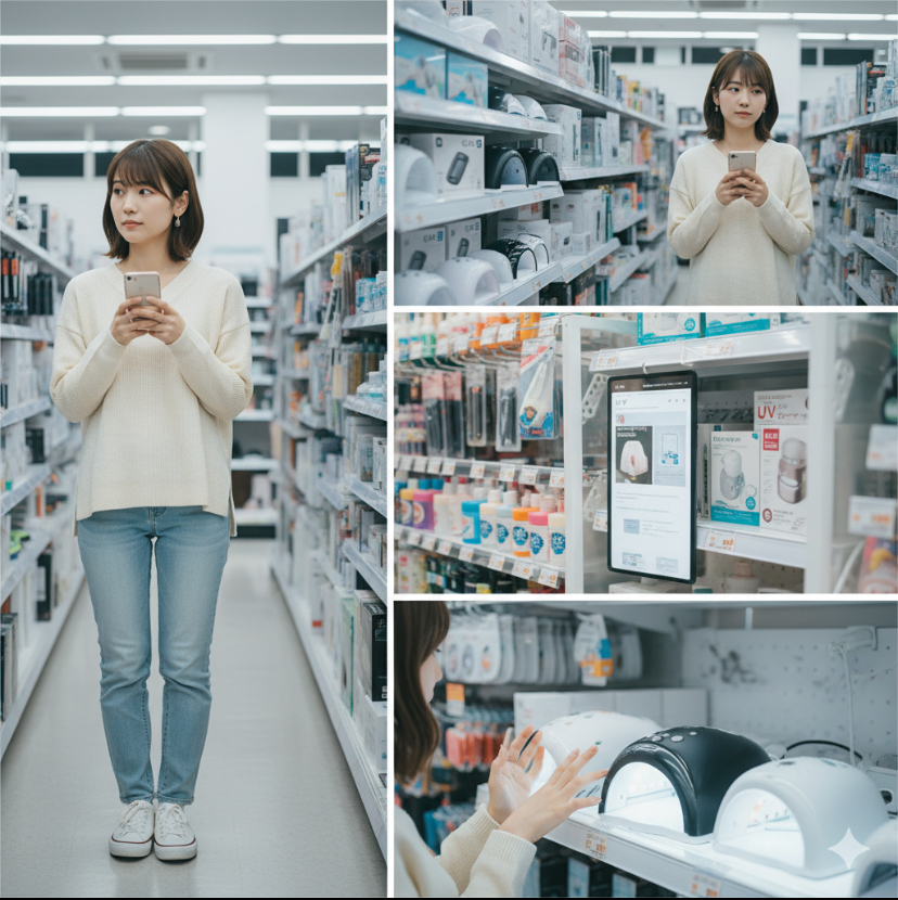 ヨドバシカメラやビックカメラといった大手家電量販店も、UVライトの購入場所として有力な候補です。ただし、探すべきはクラフトコーナーではなく、ドライヤーや美顔器などが並ぶ美容家電(ネイルケア)のコーナーです。ここには、主にプロのネイリストや、サロン品質のセルフネイルにこだわる方向けの、高性能なUV/LEDライトが数多くラインナップされています。