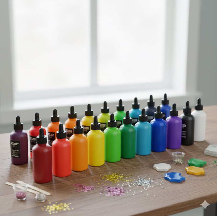 オンラインでの購入がメインとなるため、購入前にどのような色があるのかを正確に把握しておくことは非常に重要です。作家のためのレジン 着色剤の基本となる「定番12色」は、色彩理論に基づいた創作の土台となる使いやすい色がバランス良く揃っています。