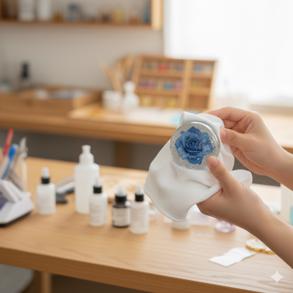 この工程は時間と手間がかかりますが、正しく行えば、曇っていた表面が嘘のように透き通り、吸い込まれるような究極の輝きを取り戻すことができます。特にジュエリー作品など、最高のクオリティを求められる場合に挑戦する価値のあるテクニックです。