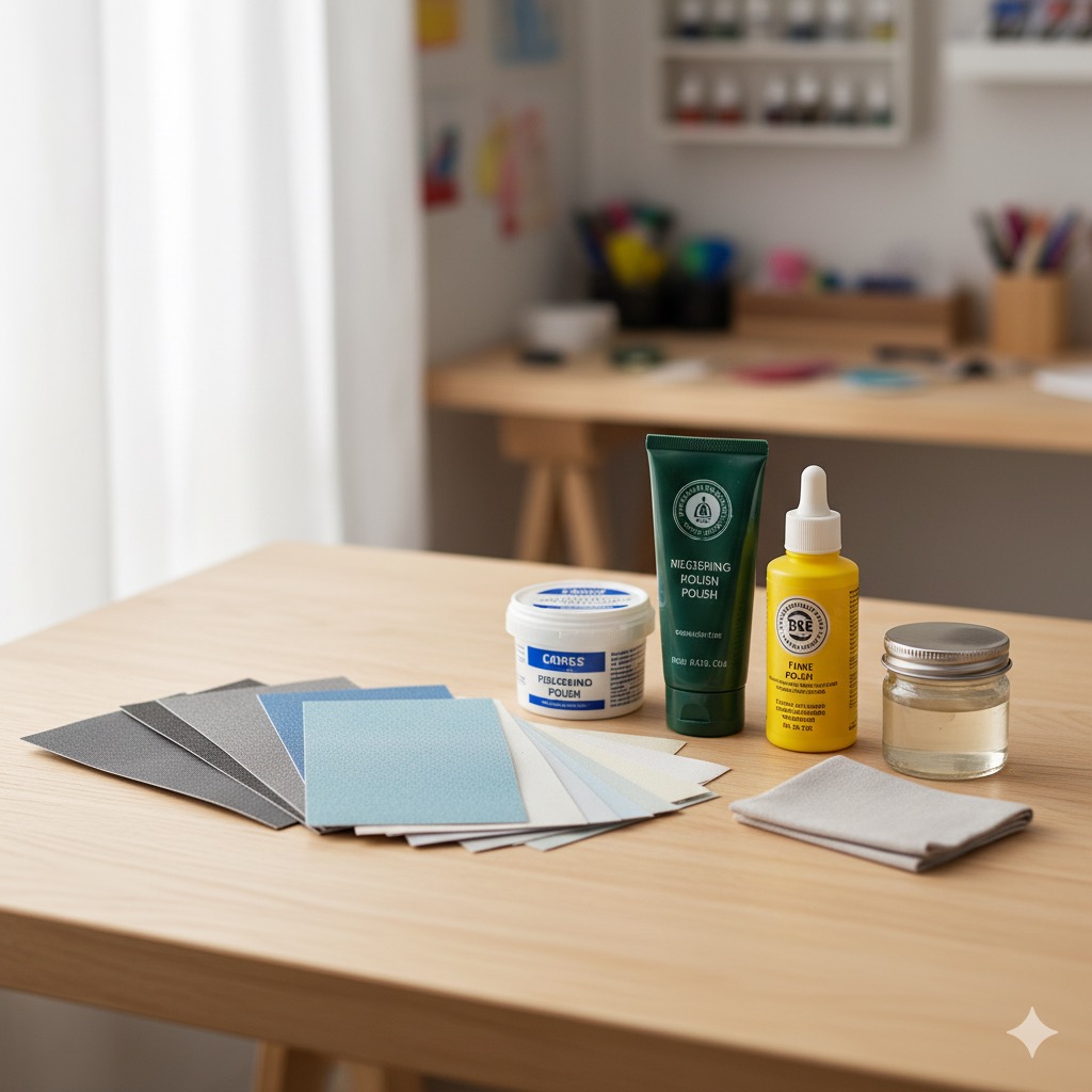 - ホームセンター: ナフコ、カインズ、コーナンなどの研磨剤・ホビー用品コーナー。金属用やプラスチック用が置かれています。ピカールなどもここで見つかります。