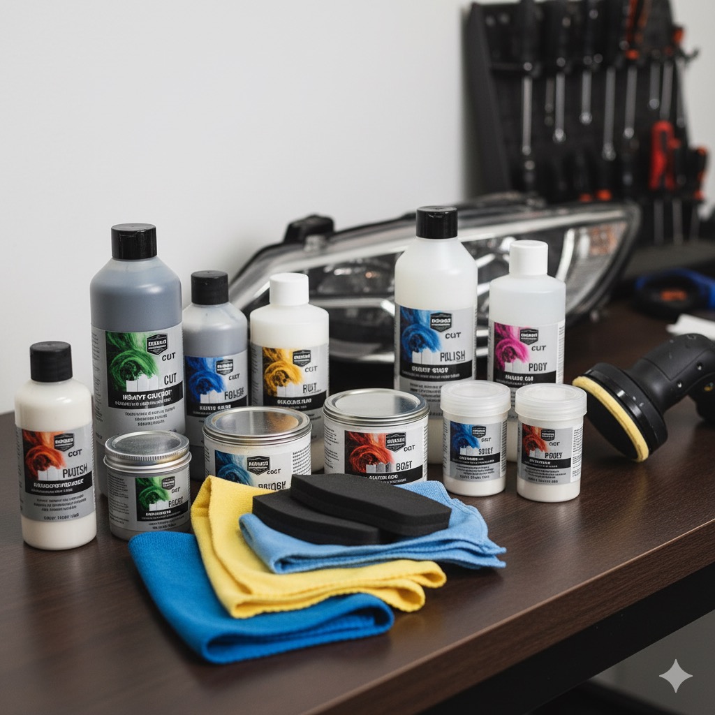 - 定番はタミヤなど模型用のコンパウンド(プラスチック用)