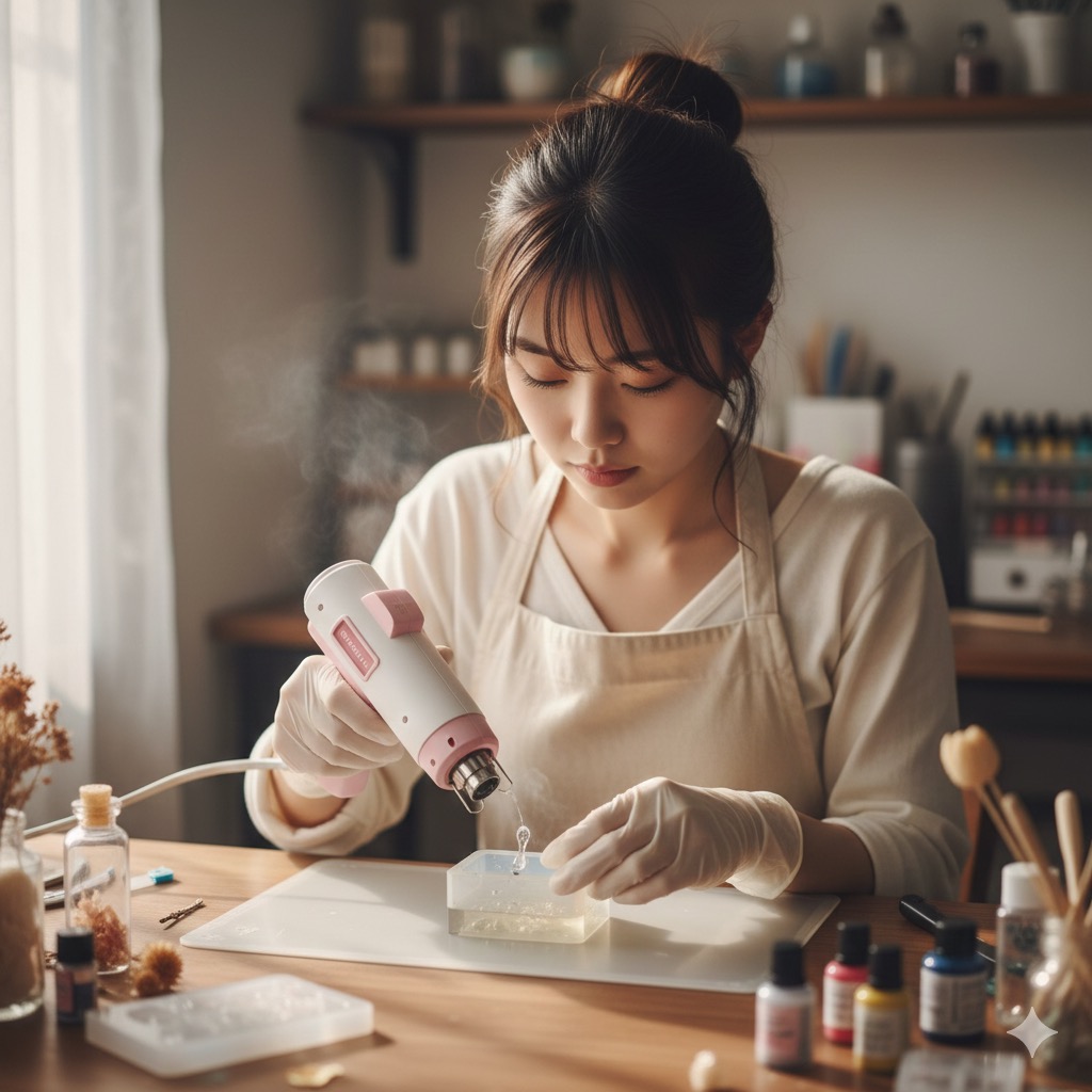 材料選びとデザインが決まったら、いよいよ制作です。ここでは、ただ固めるだけではない、プロのようなツヤツヤ・ぷっくりな仕上がりに近づけるための技術的なコツをご紹介します。この工程を丁寧に行うだけで、完成度がグッと上がりますよ。