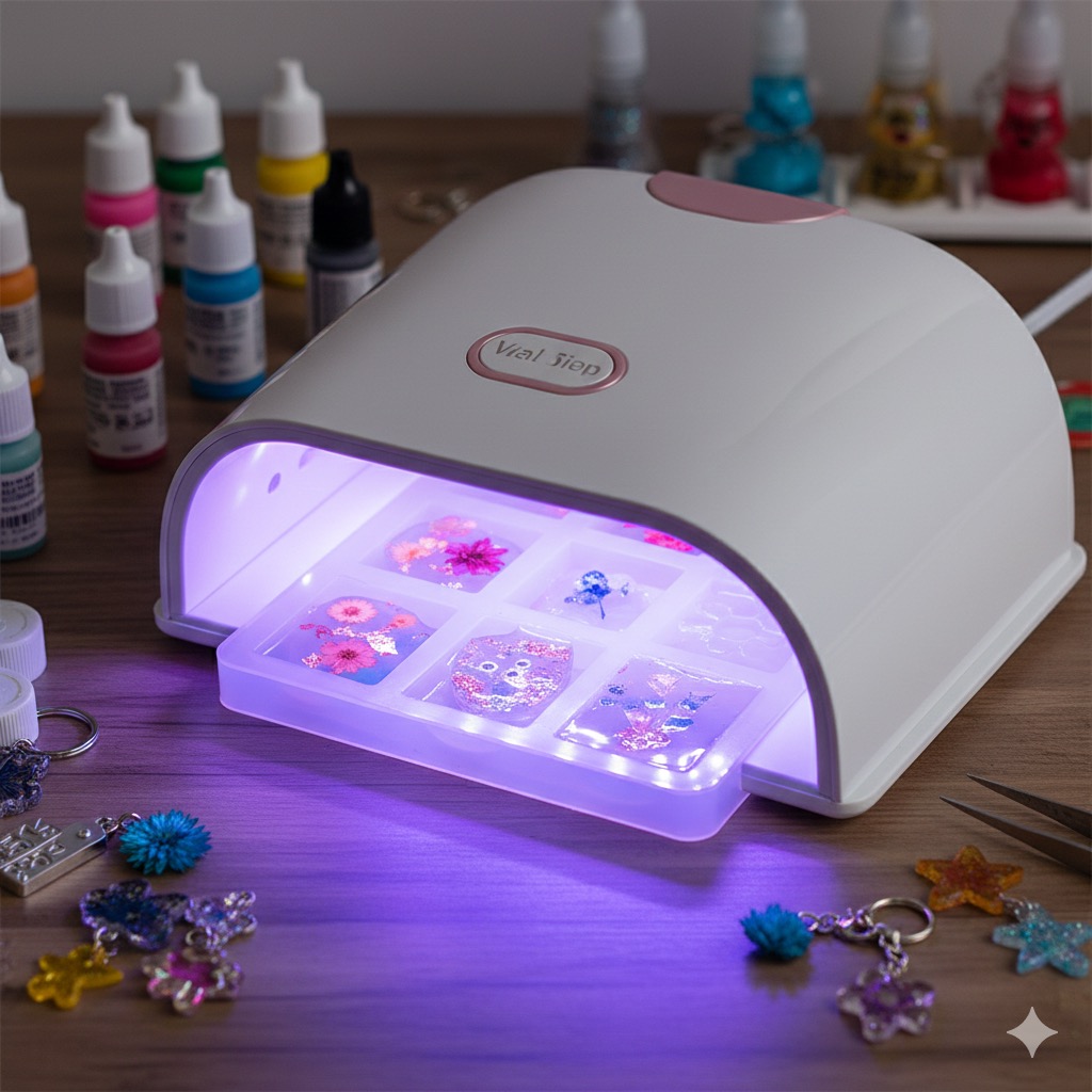 特に100均のカラーレジン(色付き)は、顔料が光を遮るため、奥まで光が届きにくく硬化不良が起きやすいです。解決策としては、以下の方法が有効です。