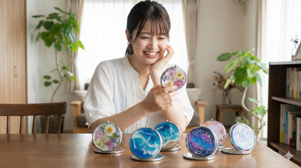 100均のコンパクトミラーとレジンを使ったハンドメイドは、安価な材料でも、作り手の愛情と少しの工夫、そして「正しい知識」があれば、世界に一つだけの宝物に変わります。
