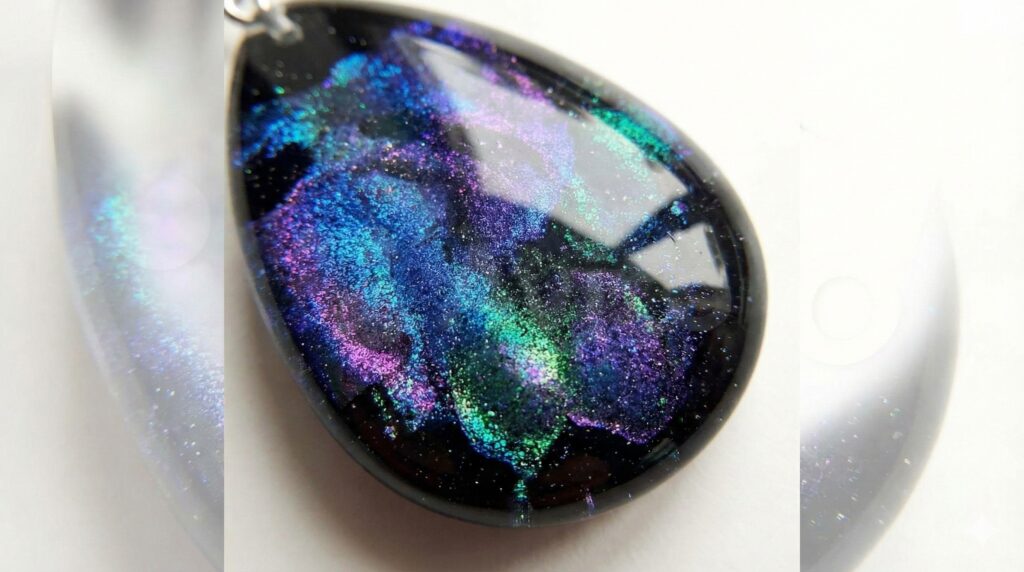 これらのパウダーの最大の特徴は、見る角度によって色が変わる「構造色」や「偏光カラー」を楽しめる点です。単なる色付けではなく、作品に魔法のような奥行きを与えてくれます。