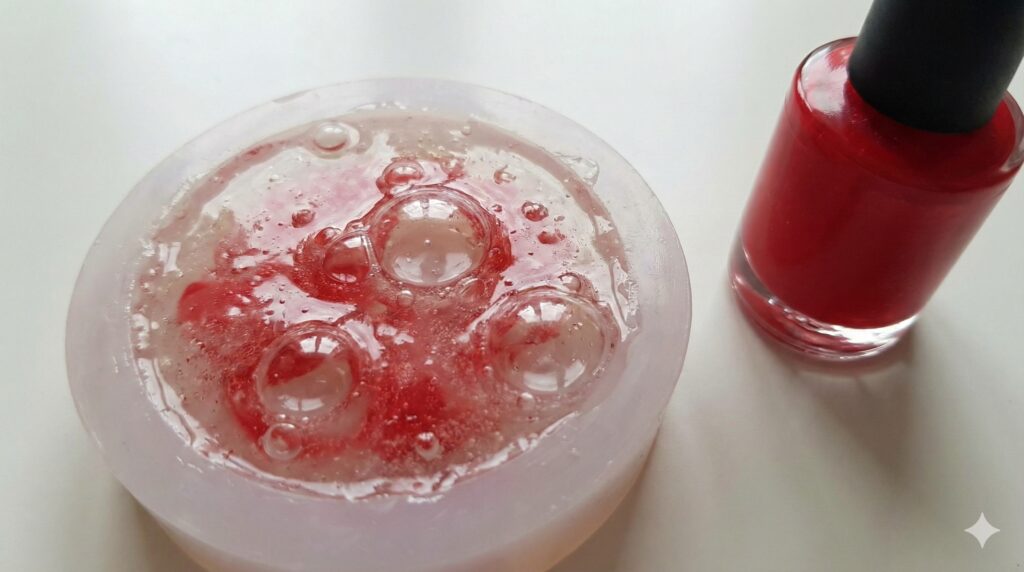 これ、初心者の頃に私もやりました。「可愛い色のマニキュアをレジン液に混ぜれば、その色のカラーレジンができるはず!」と思って混ぜてみたんです。でもこれ、実は絶対にやってはいけないNG行為の代表例なんです。