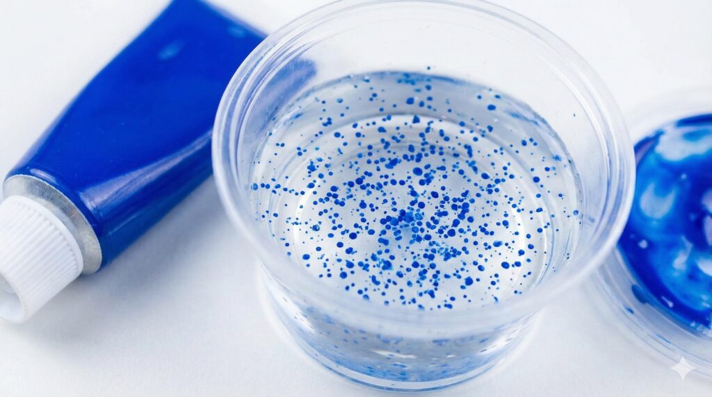 無理に混ぜようとしても、絵の具が小さな粒になって分離してしまい、意図しないドット柄のようになってしまうことが多いです。また、水分がレジンの化学反応(重合)を阻害して、表面がヌルヌルしたり、白濁したりする原因にもなります。